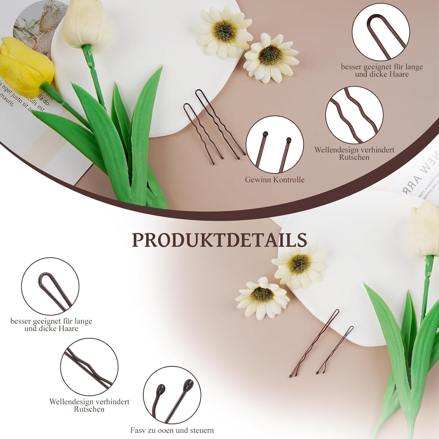 • 500 Stück Bobby Pins Braun Set – U-förmige Haarklammern, Wellenform Unsichtbare Haarnadeln