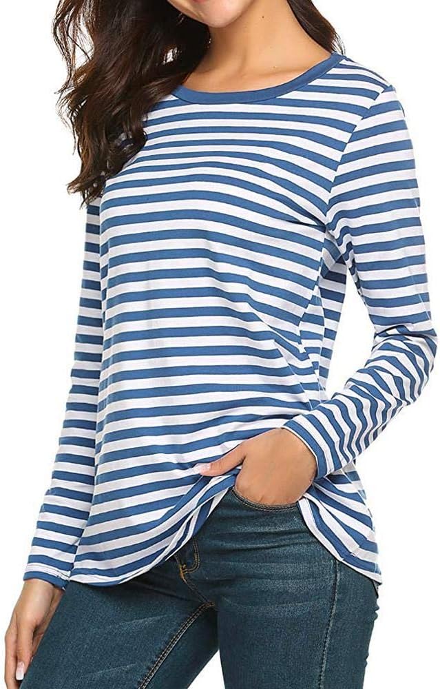 YEBIRAL Damen Pulli Langarmshirt Basic T-Shirt mit Streifen Rundhals Ausschnitt