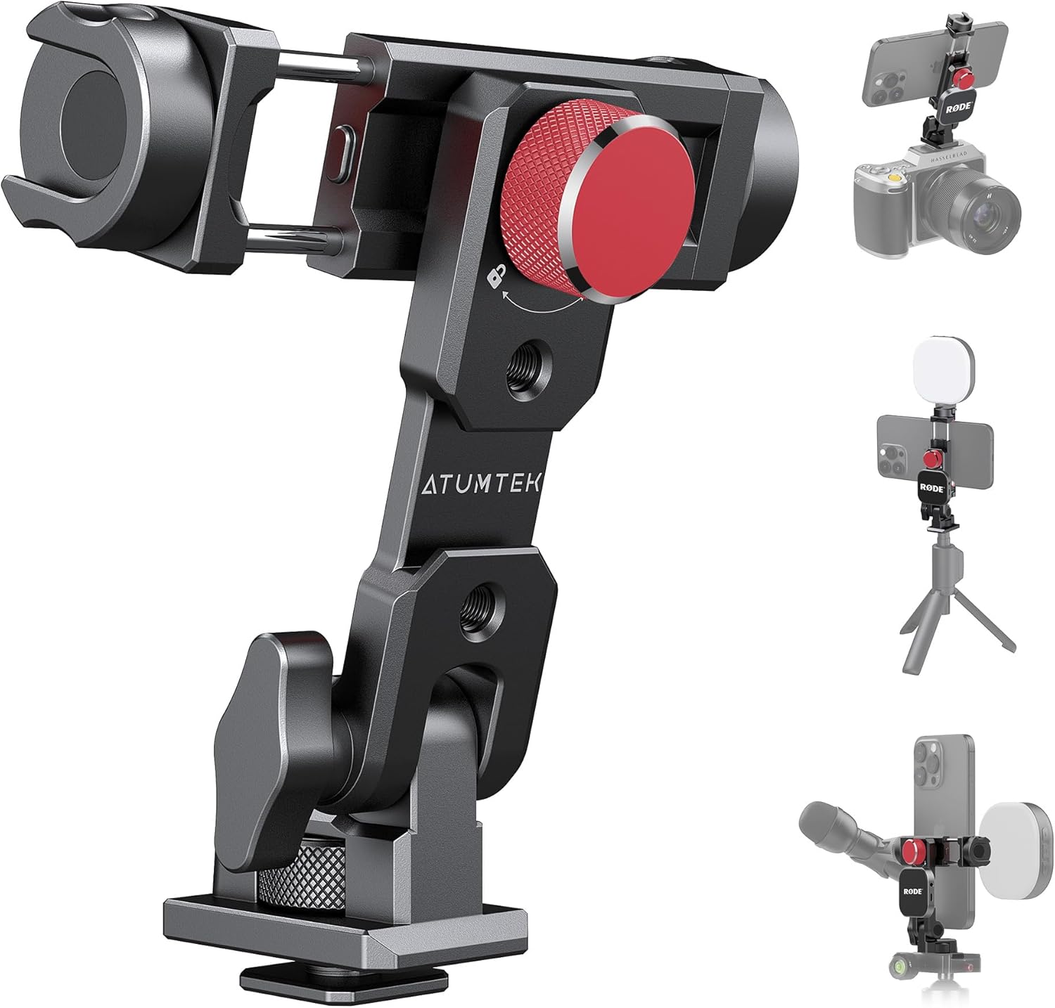 ATUMTEK Handy-Stativhalterung aus Metall, universeller Smartphone-Halterungsadapter Aluminium mit 3 Zubehörschuhen