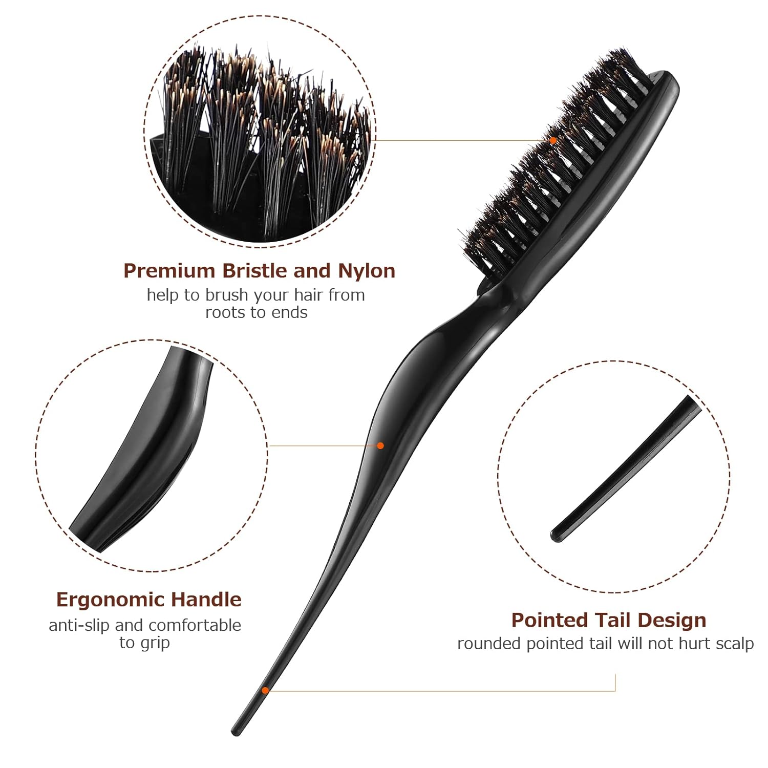 • ⭐Verschiedene Stile: Der spitze kann dir helfen, dein Haar zu flechten und die perfekte Frisur zu kreieren. Zur gleichen Zeit kann diese Bürste auch für Salon verwendet werden, um Öl zu verteilen, Haare färbend. Jedes Haar gleichmäßig schmieren.
