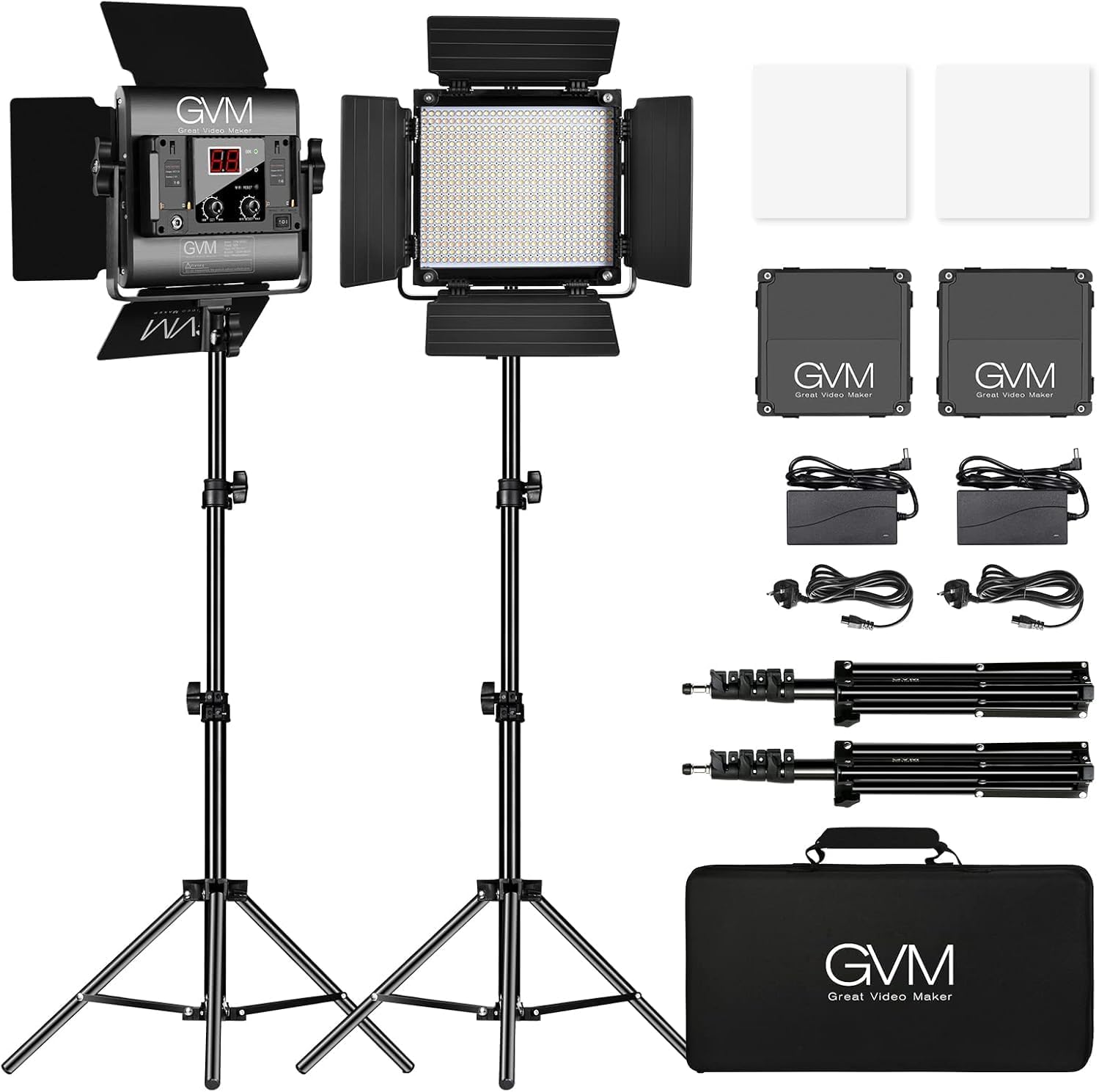 GVM 480 LED Videoleuchte mit Stativ, 2 Set Bi-Color 2300K-6800K Studiolicht Fotolicht Panel 13000Lux/0,5m